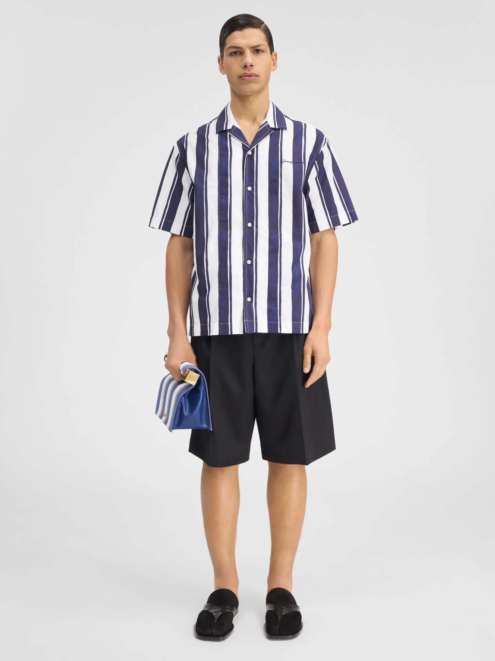 Bowling shirt with contrasting stripes