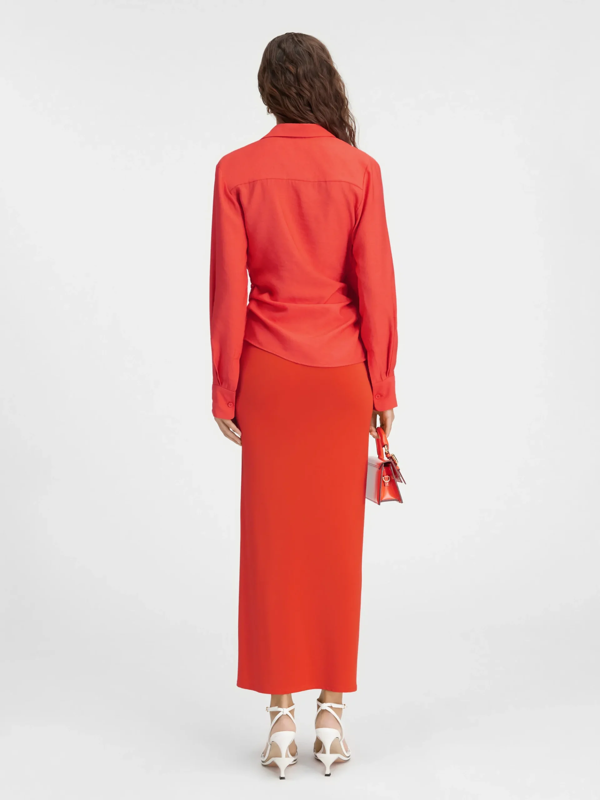 Asymmetric hemThe model is 177 cm and wears a size 34