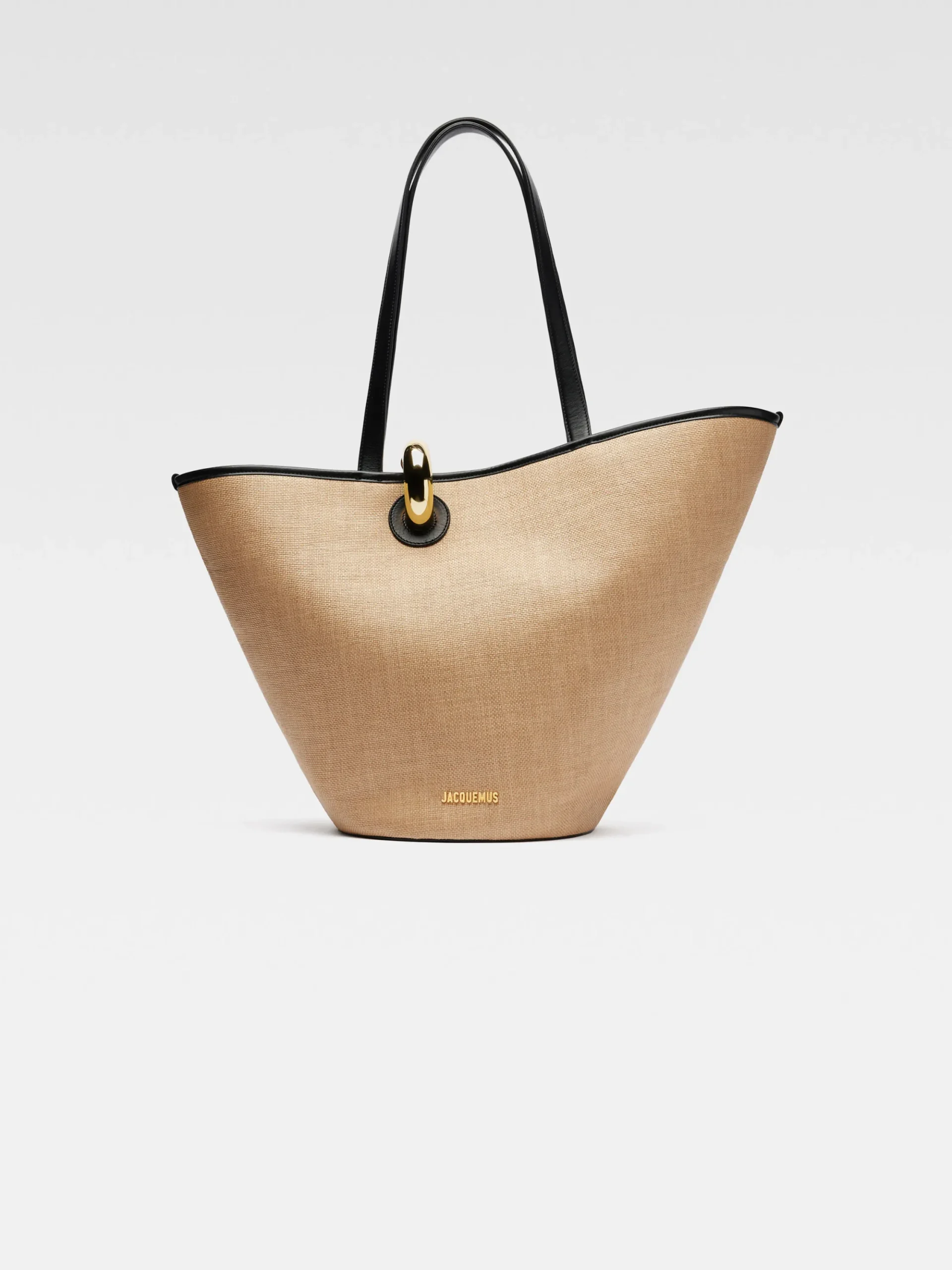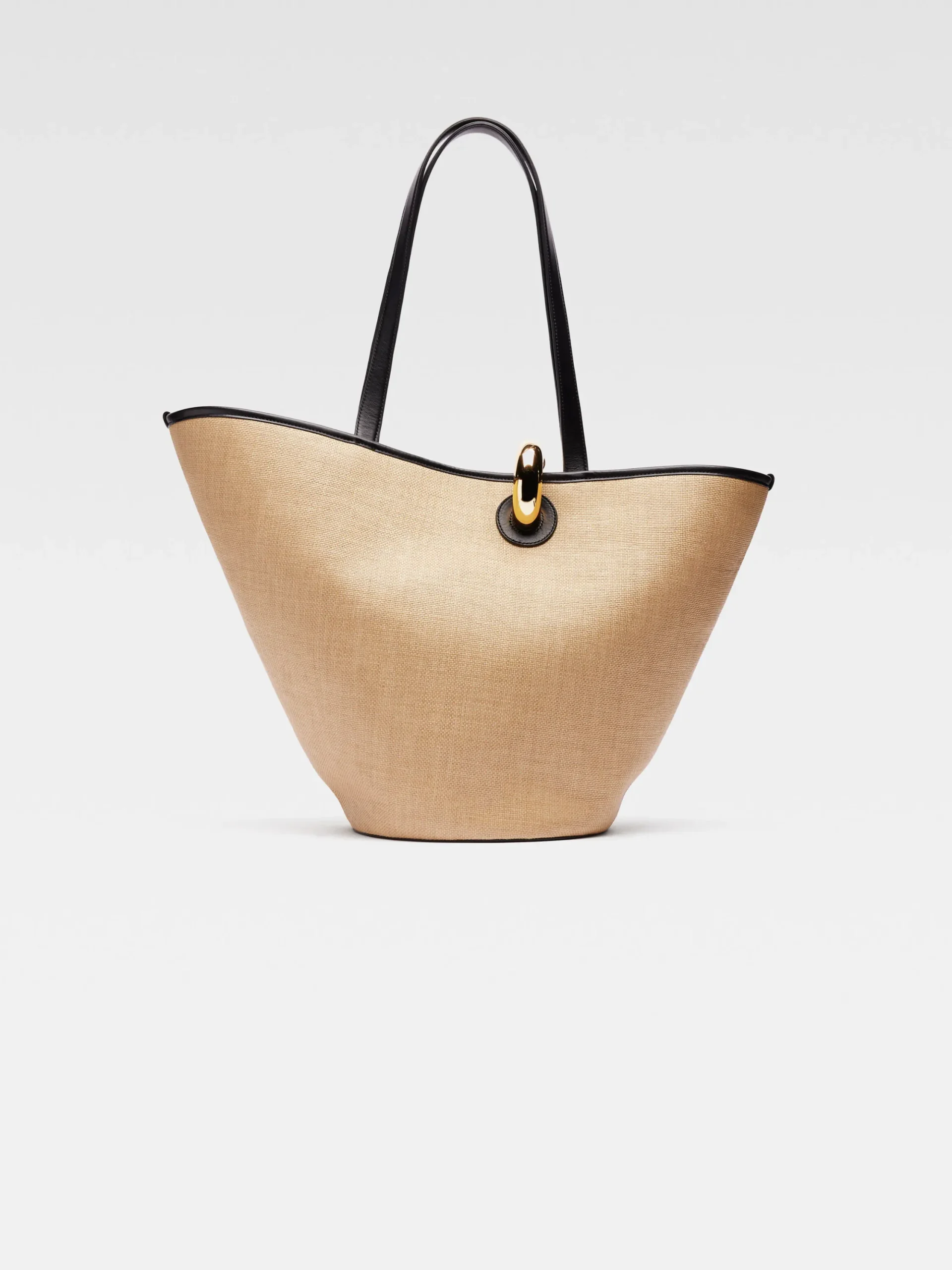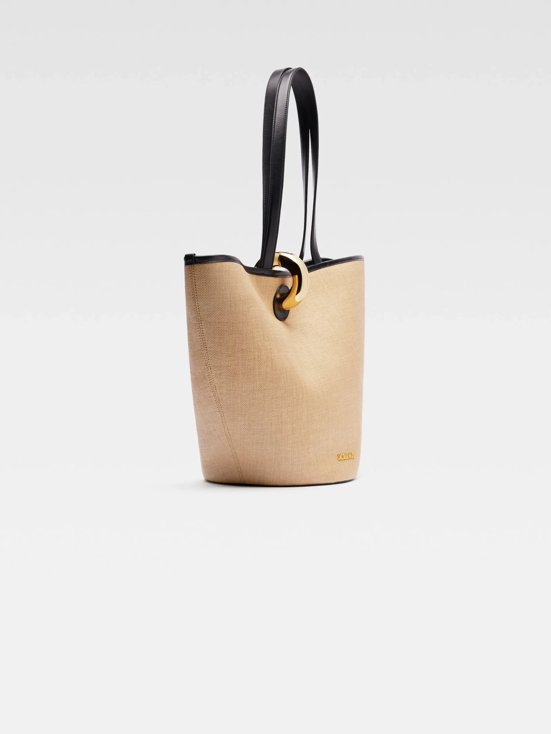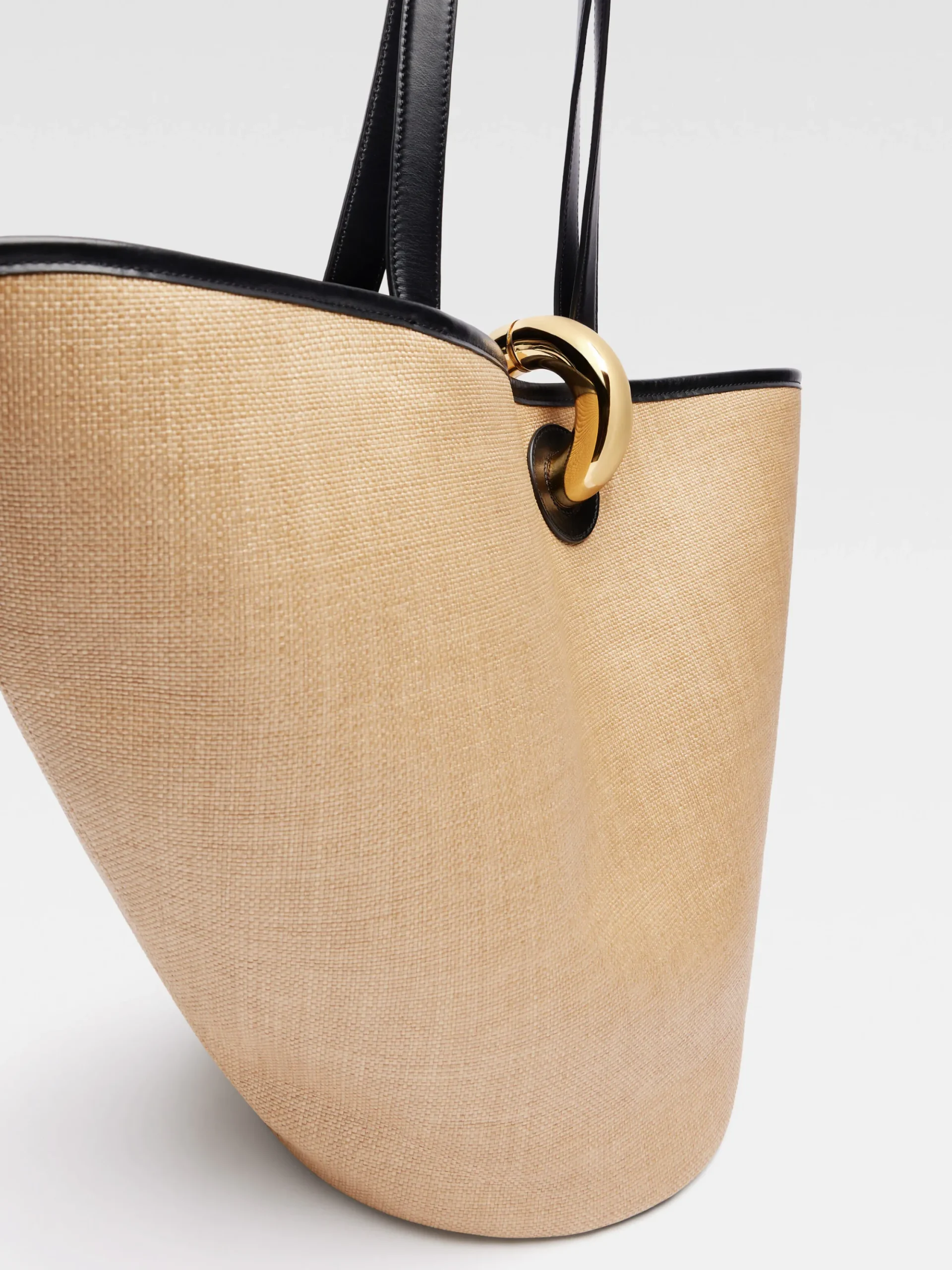 Faux-raffia bucket bag with leather trim
