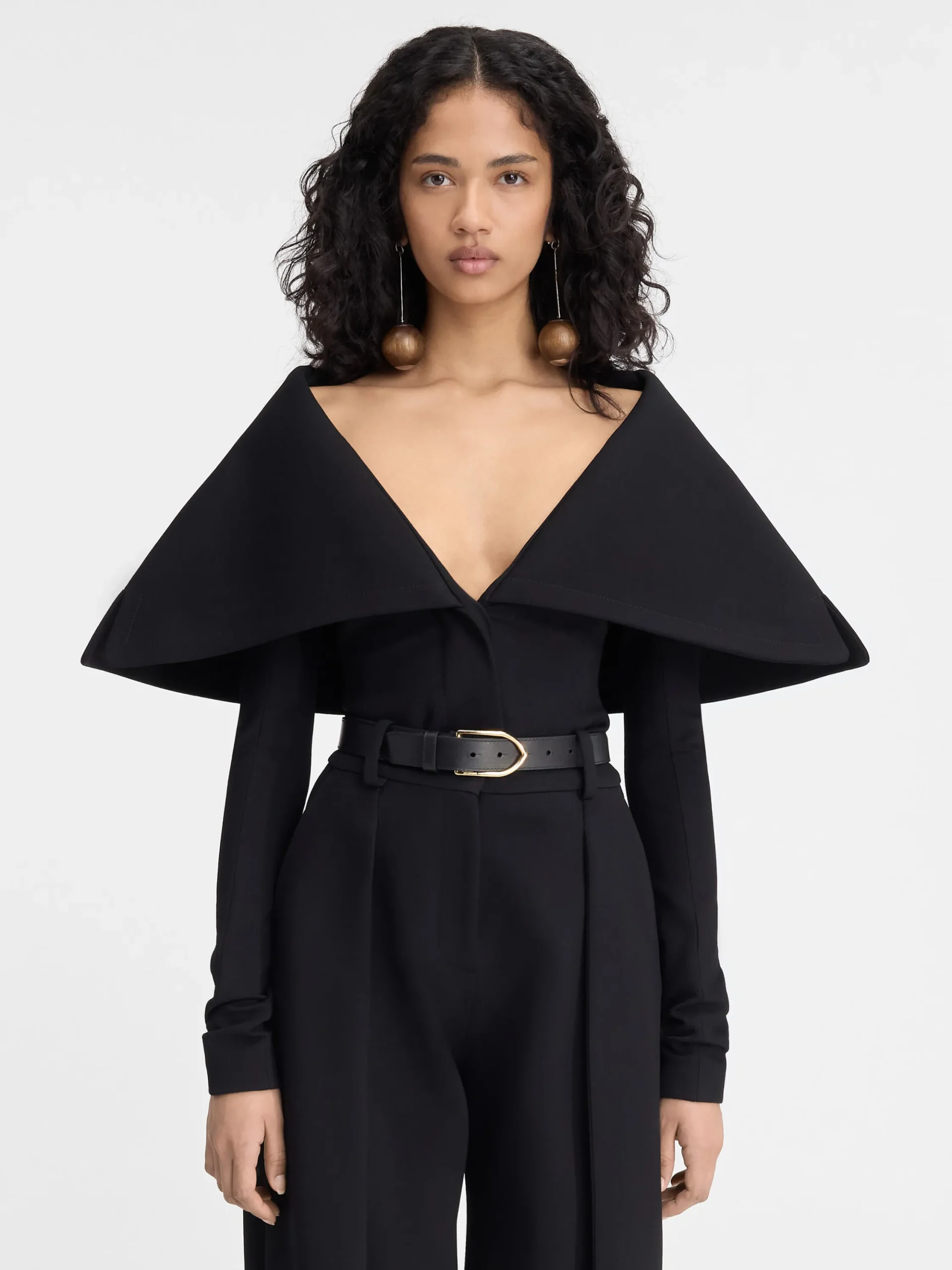 Oversized, folded collar with notched edges