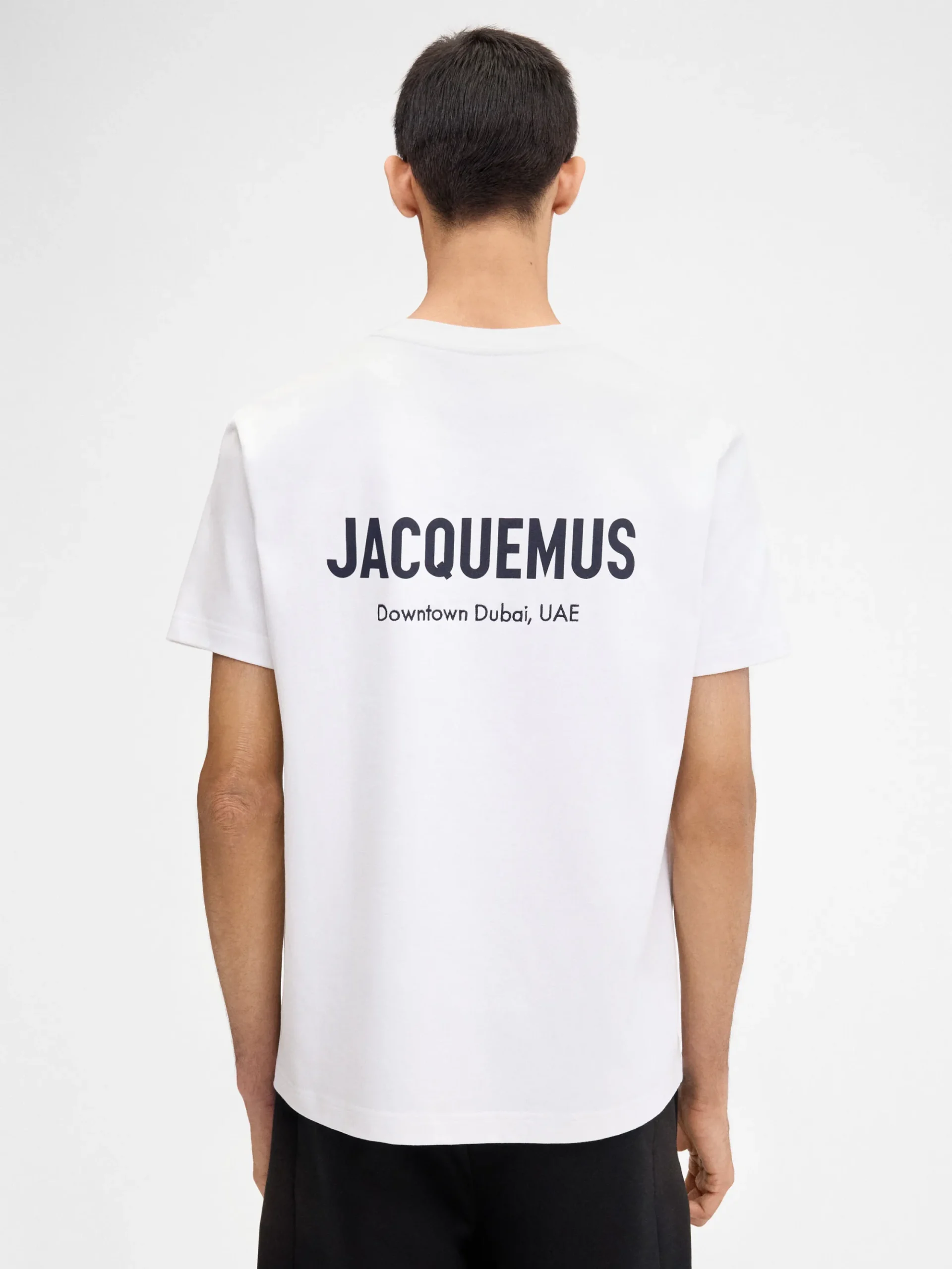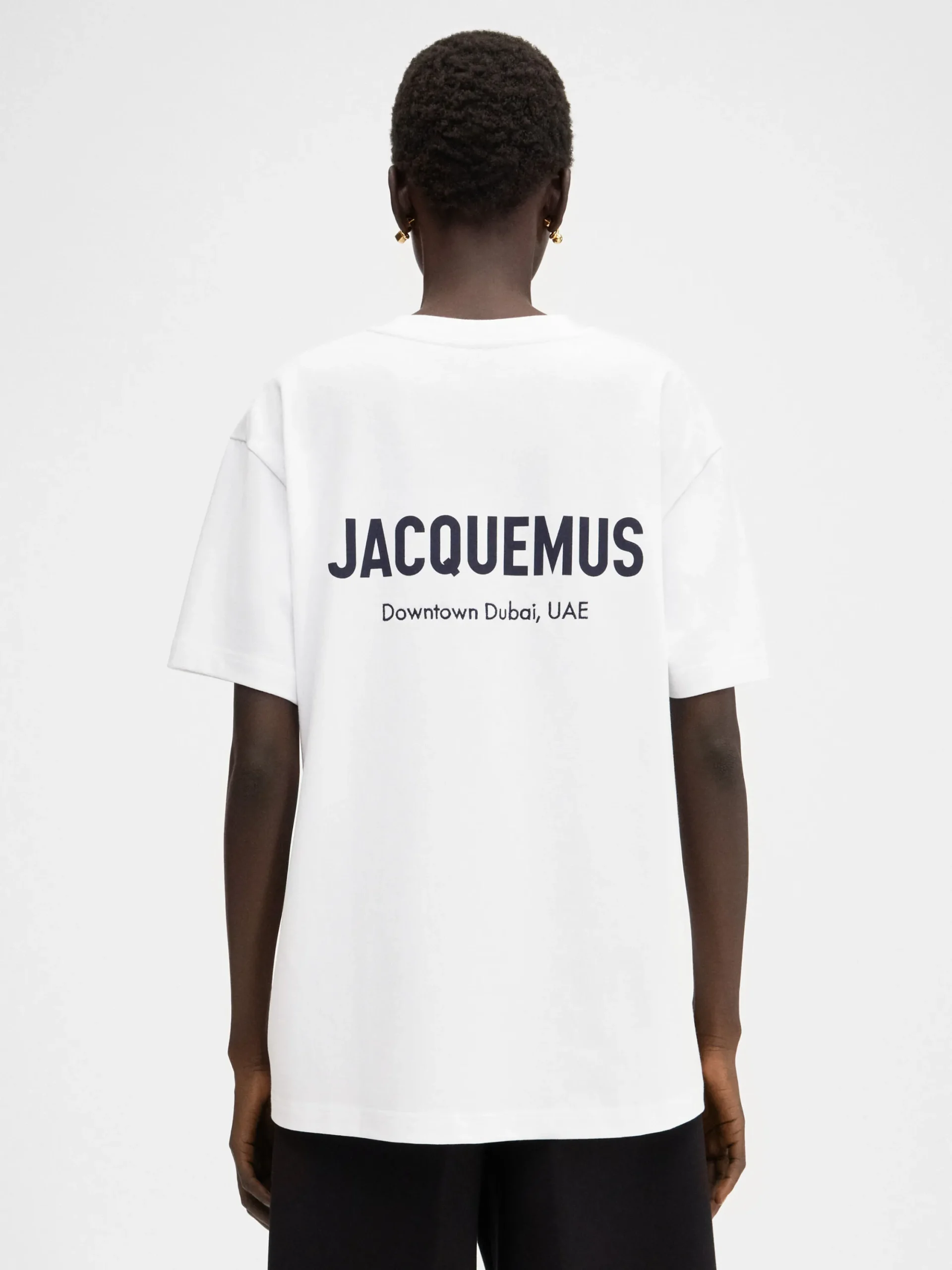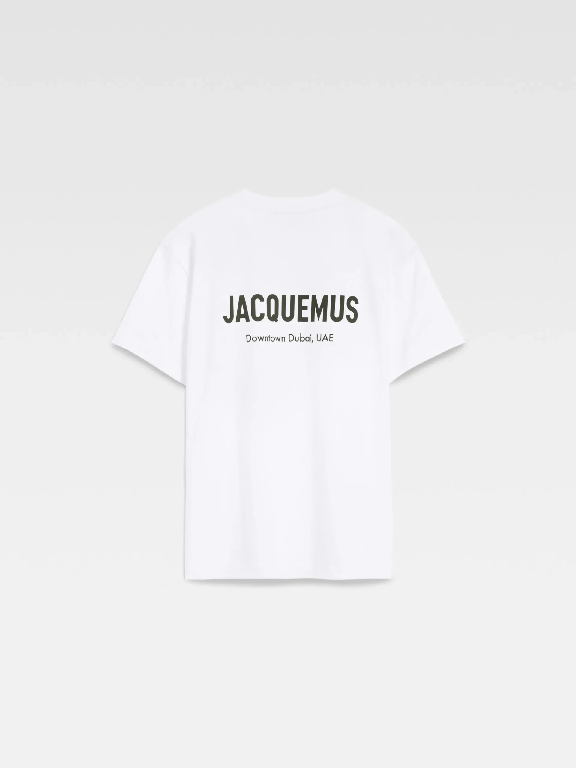 Printed address of the Jacquemus boutique on backSold exclusively online and in the boutique located at Dubai Mall, First floor, Fashion Avenue, Dubai.