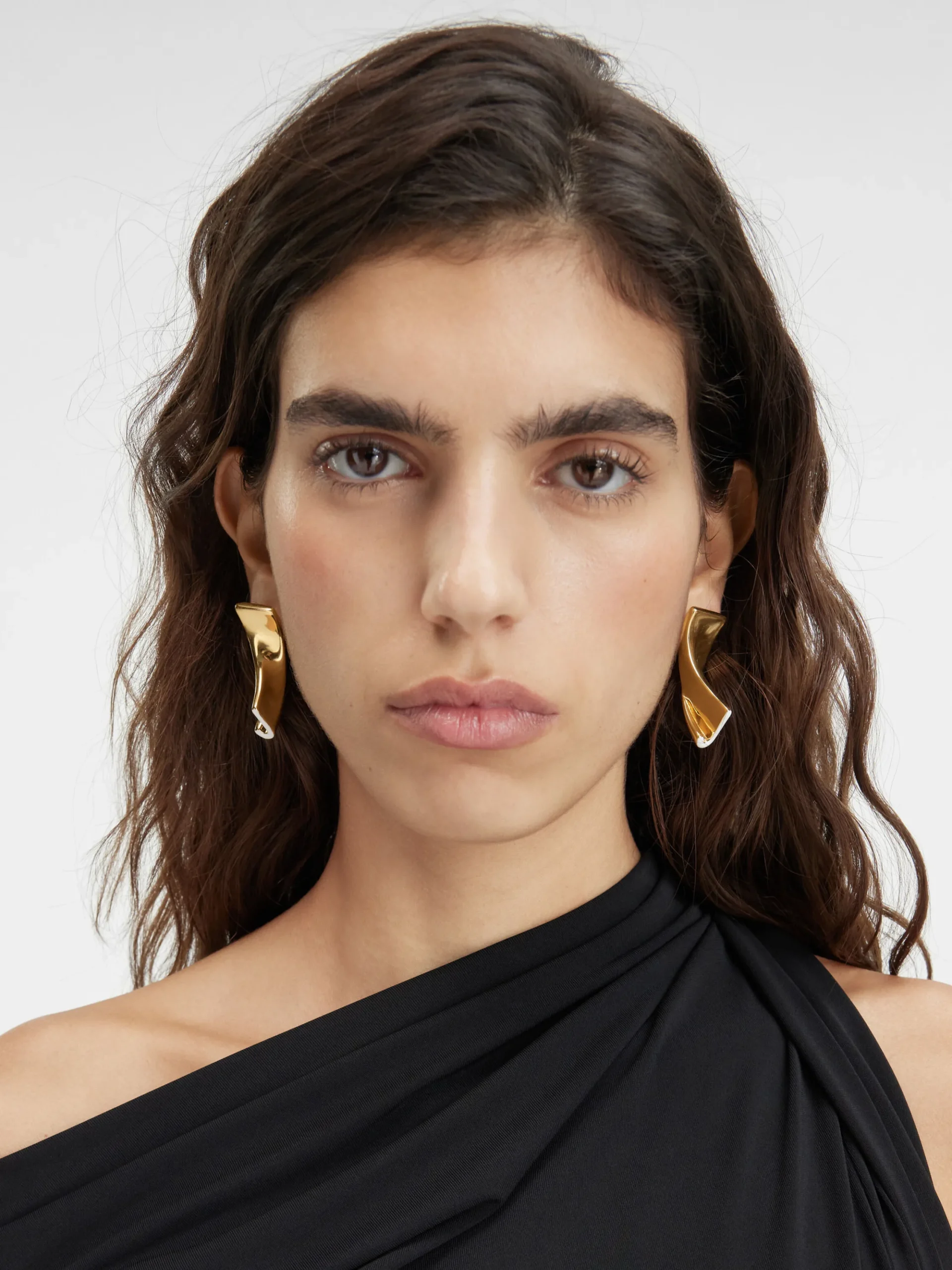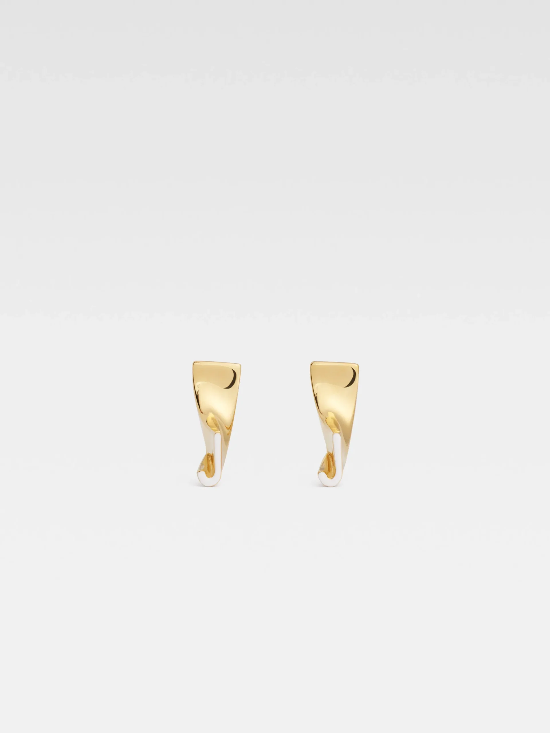 Gold plated brass asymmetric earrings with white enamel