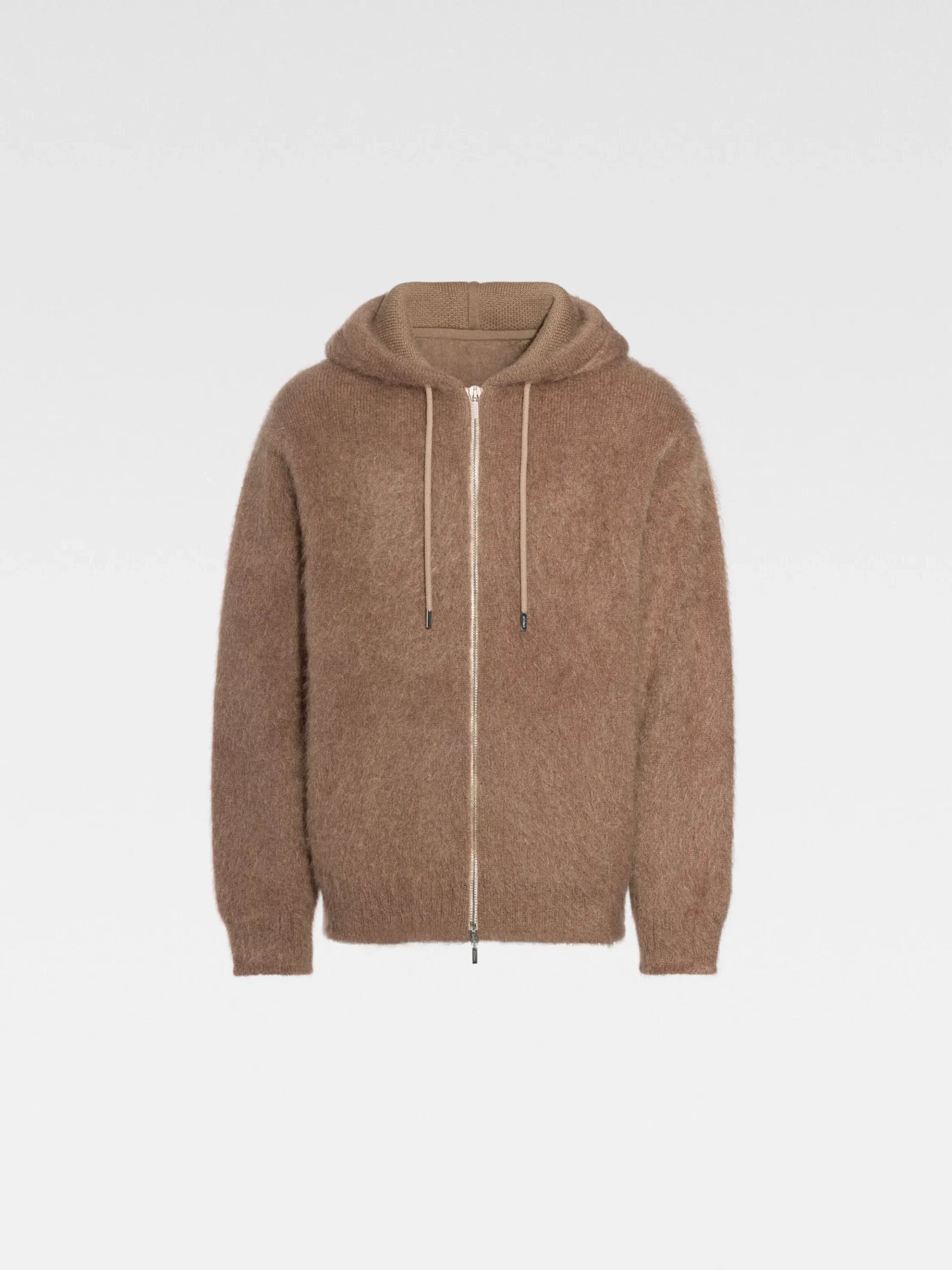Hooded cardigan in mohair and wool
