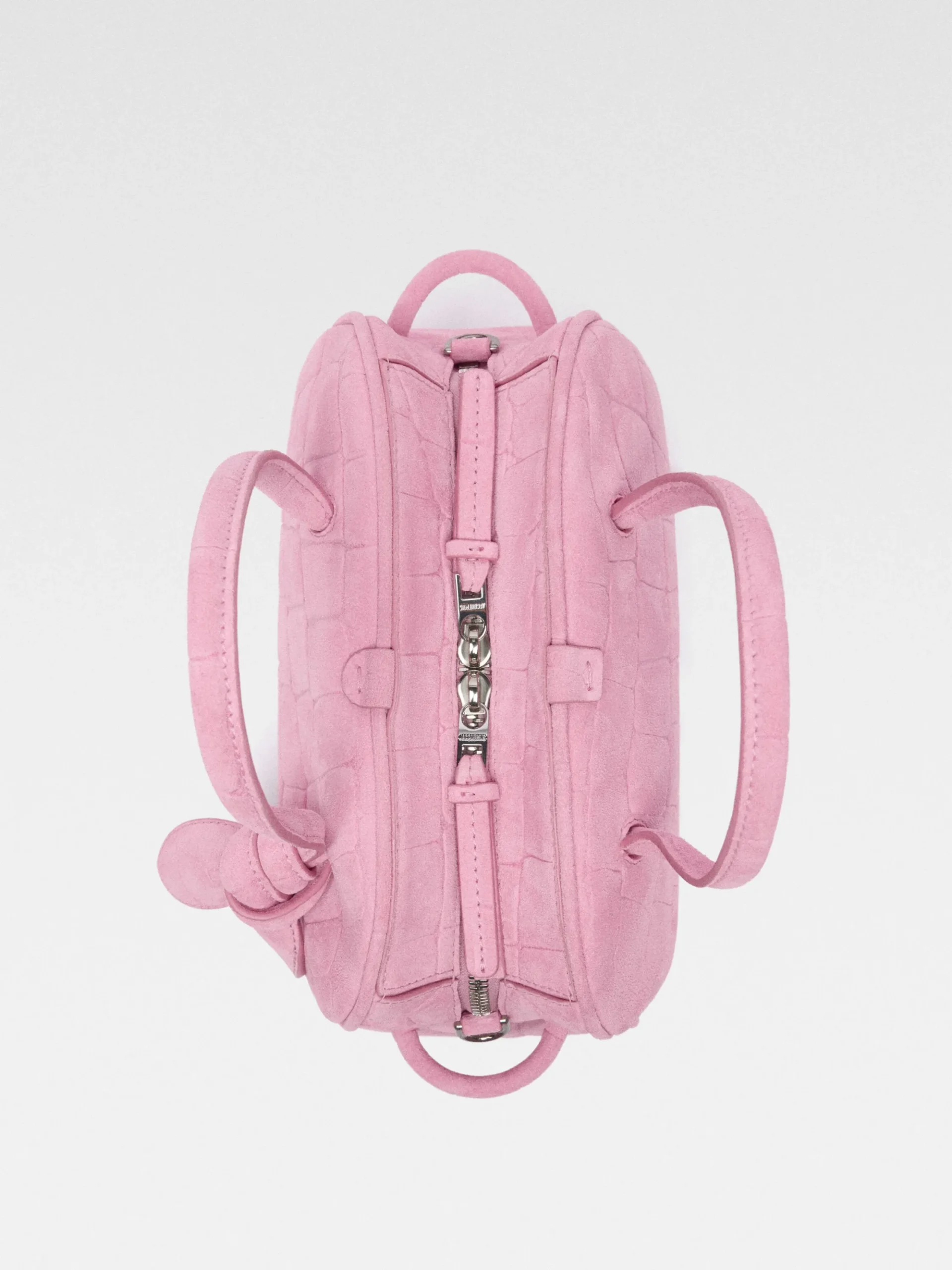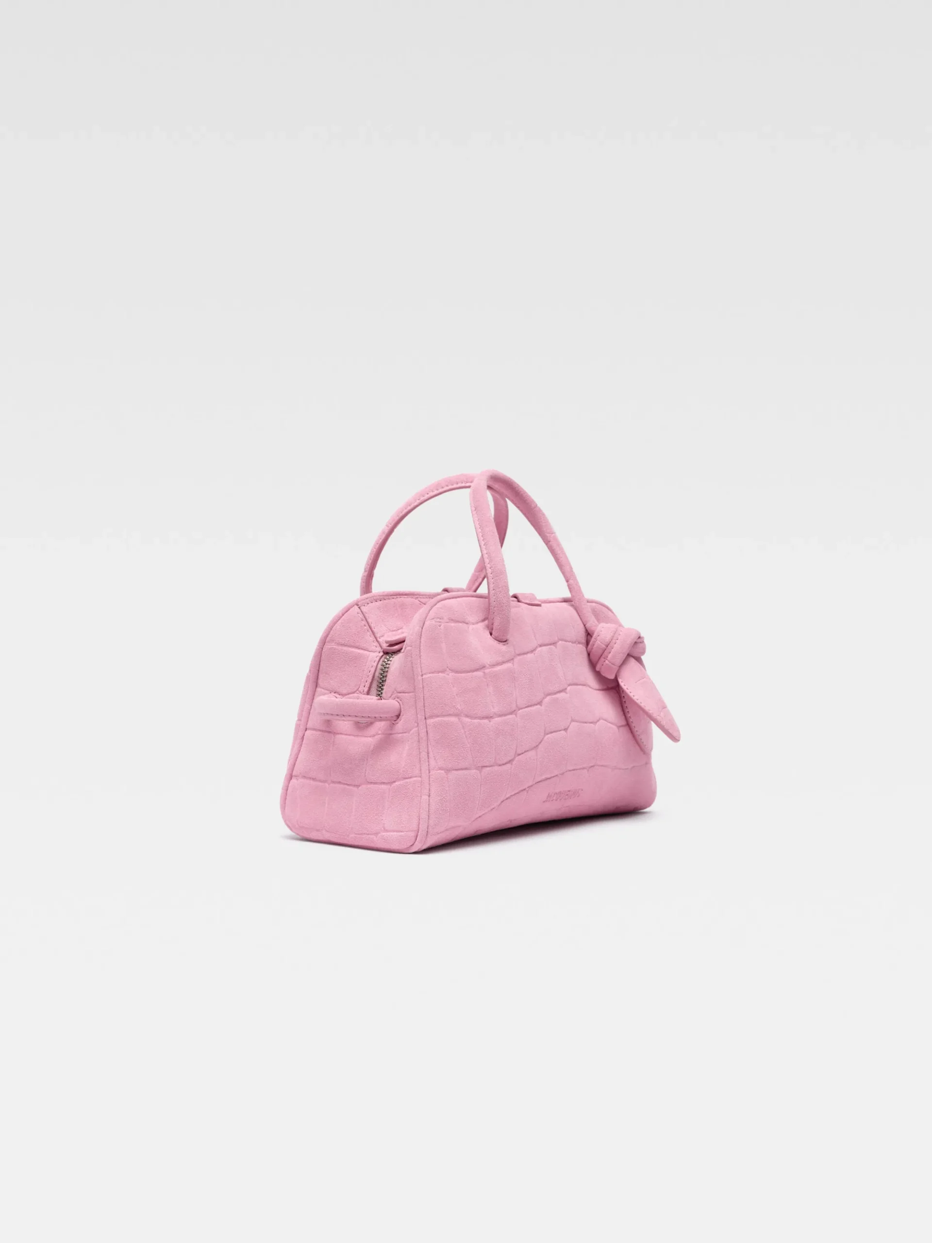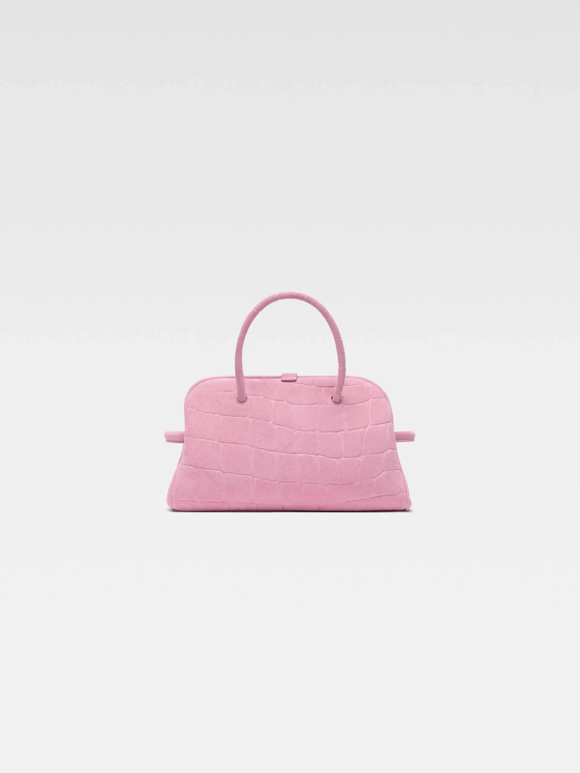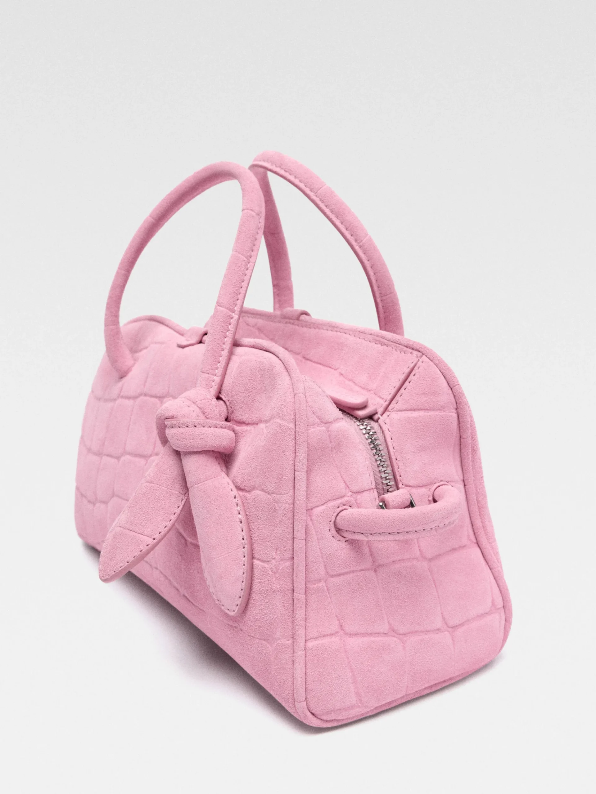 Crocodile embossed suede bowling bag