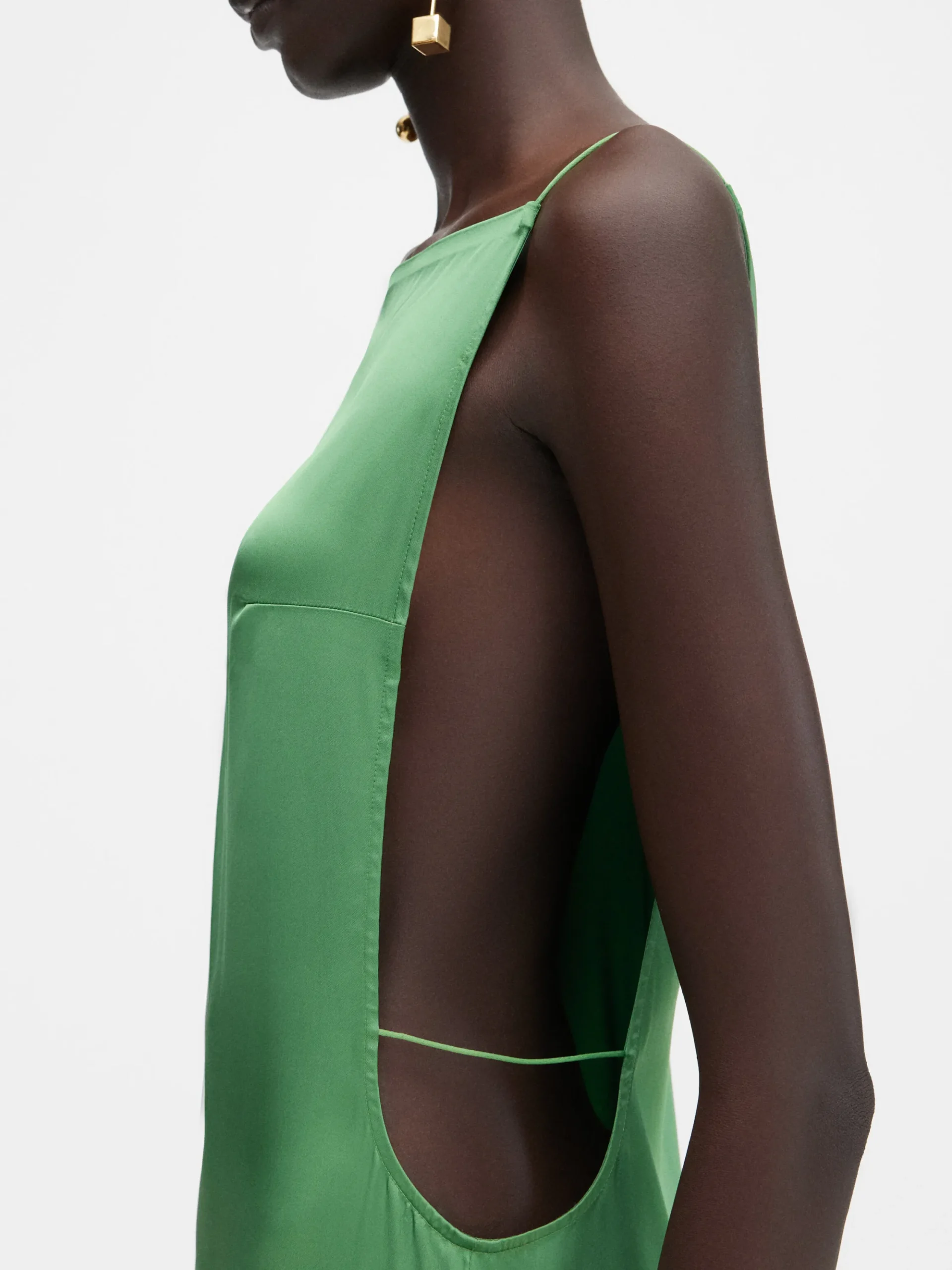 Open on one side with a spaghetti strap