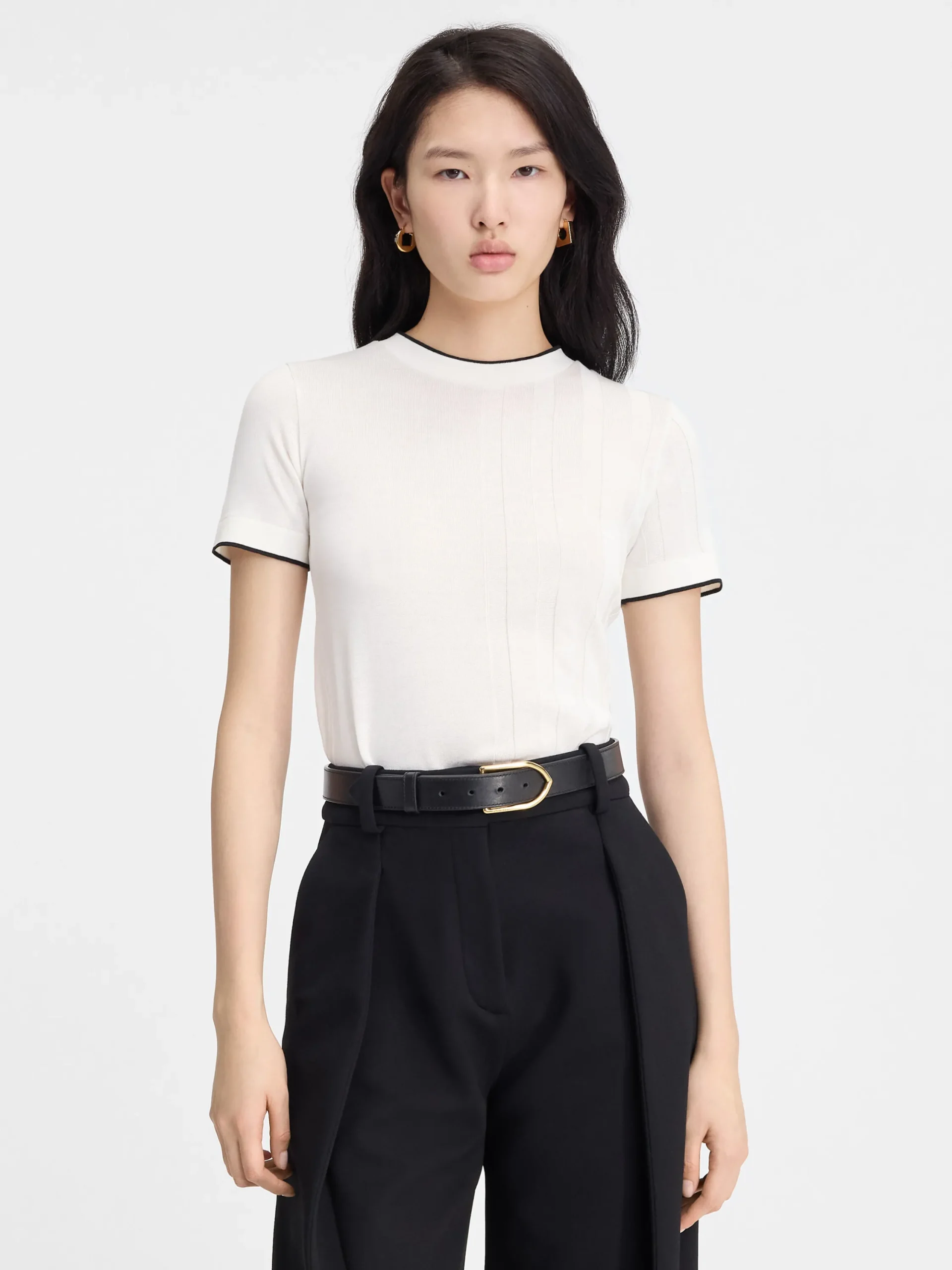 Fine cotton knit with asymmetric stripe detail